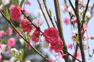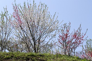 山菜の販売などが行なわれる建物。ここの展望所からは日本海方面の眺めは抜群です 建物の裏手にハナモモ林があります ハナモモは終わりを迎えていました 葉も出てきました ハナモモの種類は4〜5種類ありました 次回は最盛期に訪れてたいと思います 撮影日:2024/4/25