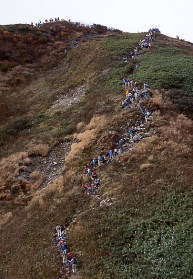 頂上への最後の登り。行列となっています。