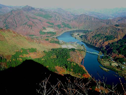| 山頂の様子 | 山頂から只見川の流れが手に取るように。影蒲生も。拡大写真 |