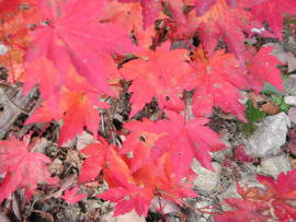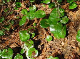 | 標高を上げるごとに下界の景色は変わっていく | 艶のあるイワウチワの葉 |
