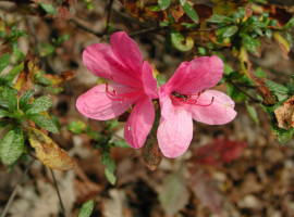 | 春に咲くツツジが咲いていた | 夫婦松。2本の松が途中でくっついている |