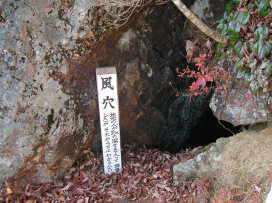 | 鼻毛通しという岩の穴を振りかえる | 風穴 |