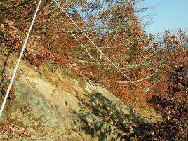| わずかにアキノキリンソウが咲いていた | ロープを伝いトラバース |