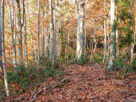 | 雑木林の中へ入っていく。林床は春にはカタクリの花が楽しめる | 二荒山神社の脇から登りはじめる |