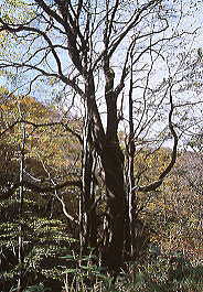 | 道中の安全祈願か 野仏に石積み | 樹齢100年はありそうなこの木はどのくらいの旅人を見てきたのか |