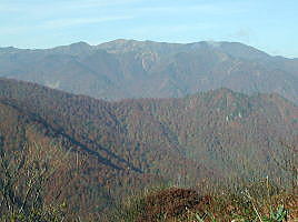 | 群馬側の山並み | 中央奥の平な山は苗場山 |