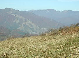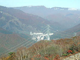 | 白いのは苗場スキー場のホテル群 | 登って来た三国峠方面を見下ろす |
