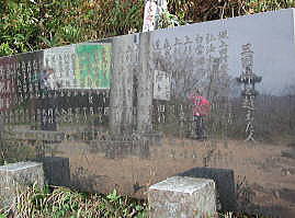 | 「三国峠を越えた人」の碑 坂上田村麻呂、弘法大師、良寛、伊能忠敬、河井継之助などの名前がある | 峠から三国山方面へ進路変えるとようやく花(アザミ)を見つけた |