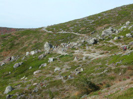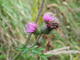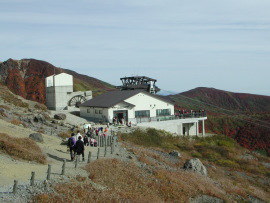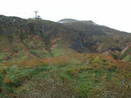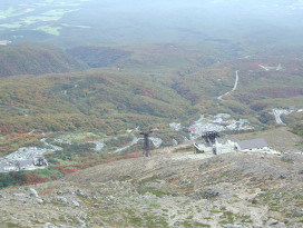 | アザミはそろそろ終り。ノハラアザミか? | ロープウェイ山麓駅から山頂駅を望む |