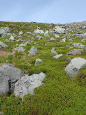 | 足元もそれぞれの色 | 茶臼岳山頂は岩の盛り上がり |
