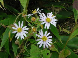 | 下の駐車場からロープウェイ山麓駅へ向かう途中で見つけたゲンノショウコ | 野菊も花盛り。ノコンギクか? |
