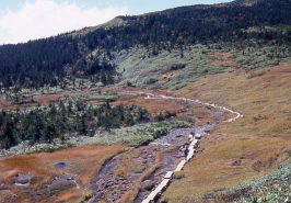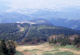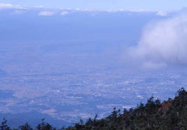 | 見下ろす街は米沢か? | オオシラビソの樹林 |