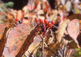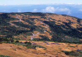| 登ってきたリフトを見下ろす | ゴゼンタチバナのそれぞれの紅葉 |