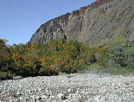 | ゲンノショウコ | 取水施設。ここから上流は平坦な河原が続きます。河原は取入口高地といわれています |