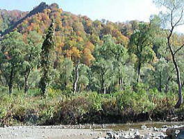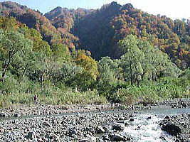 | リンドウと思われるが・・ | 紅葉の山を背景に流れる海川 |