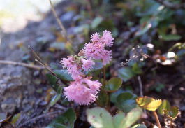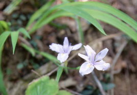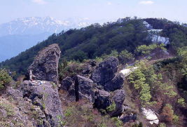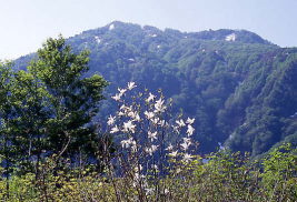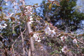 登山道中ほどではイワウチワの群落が、また山頂付近では山桜がまだ咲いていました。