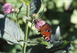 | 出発点の酸ヶ湯温泉 | アザミとクジャクチョウ |