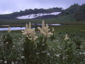 | 白い花はイワイチョウ(天狗の庭で) | コバイケイソウ |