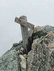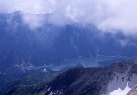 | 雲の切れ間から黒部ダムが現れた | 最高峰大汝山にある標柱 |