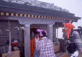 | 雄山山頂には神社 | 神社でお祓いを受け、お神酒をいただく |
