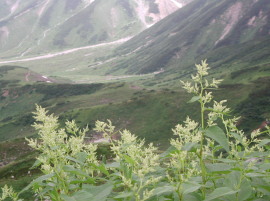 | 室堂ターミナルから立山山頂は雲に隠れて見えない | ヨツバシオガマ |